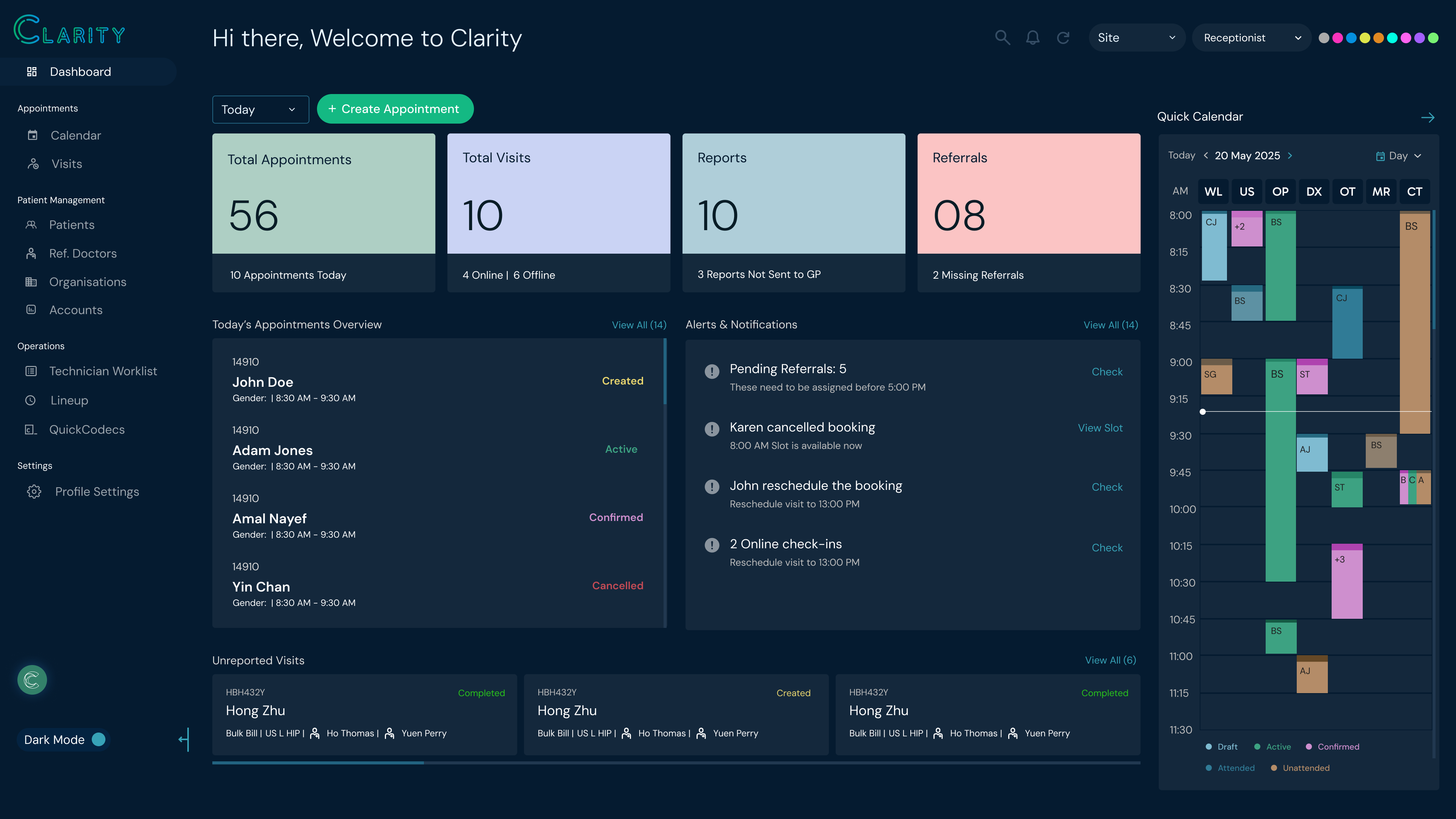 • Smart calendar scheduling with slot optimisation and automated reminders